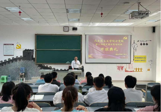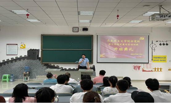 开班典礼在庄严的国歌声中拉开序幕。王万江作开班讲话,他强调开办培训班的重要性及必要性,并对全体学员提出三点要求,一要深刻认识集中培训的重要意义;二要端正入党动机,发挥模范带头作用;三要讲求学习方法,做到知行合一。韩贞习就入党申请书、思想汇报等内容的规范书写进行培训,要求全体学员对各种文献的引用做到准确无误。