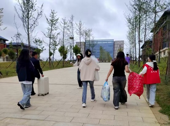在公司党委副书记兼纪委书记王万江、分团委副书记兼辅导员马景瑶、班主任刘雪冬等老师的带领协调下,党员志愿者与学院员工会成员密切配合,高效有序地推进各项迎新任务。学校一号门、二号门和四号门均设有志愿者引导点,为新生提供路线指引和报到协助;A7宿舍楼下设置的学院报到点,集中办理入学手续,确保流程顺畅。此外,学院还派出班主任杨璨玉、陈娅娅带领员工志愿者,前往贵阳客车东站(龙洞堡)开展校外迎新接站工作,实现从车站到校园的“一站式”暖心服务。