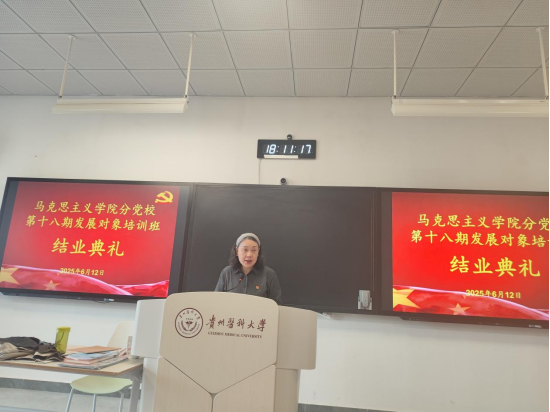 6月12日,公司分党校在善思楼R101教室举行第18期入党积极分子培训班结业典礼,医学人文公司正处级组织员刘雪梅、正科级组织员谭婷、班主任余茂英及全体学员参加,结业典礼由谭婷主持。在庄严的国歌声中结业典礼拉开序幕。余茂英简要总结本次培训班学习情况,通报本次获得优秀学员的名单,鼓励大家向优秀学员学习,将个人理想与国家命运联系在一起,为实现中华民族伟大复兴而不懈努力。