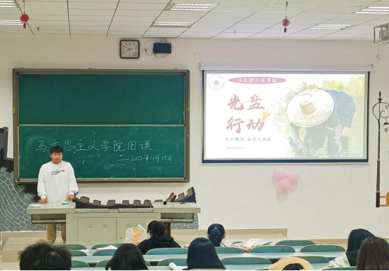 两位团支书向同学们介绍了“光盘”行动的相关背景,让同学们充分认识本次活动举办的目的与意义。全体员工观看了电影《袁隆平》。通过解读袁隆平院士以及围绕粮食战线从事忘我工作的科技工作者们的感人事迹,大家了解到我国粮食生产未来所面临的严峻困难以及生活中继承勤俭节约传统美德的重大意义,同学们也更加体会到“一粥一饭当思来之不易”的深刻内涵。