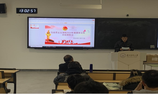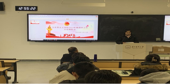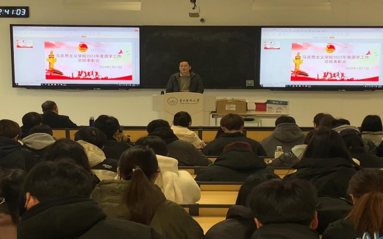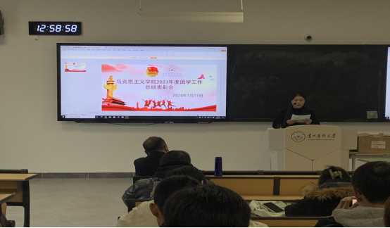 马景瑶对学院2023年度团学工作进行全面总结。他指出,过去的一年,学院团学工作队伍紧密围绕学校、学院中心工作,以服务青年员工成长为宗旨,认真履行职责,在团委工作、员工工作等方面取得了很大的进步。同时,学院团学工作还存在开展志愿服务活动的数量不够多、班级管理水平有待提升等问题。他表示,学院团学工作队伍会不断提升自身综合能力和团学工作水平,加强制度建设,抓好工作落实,争取取得更大成绩,为推进学校团学工作高质量发展作出新的更大的贡献。