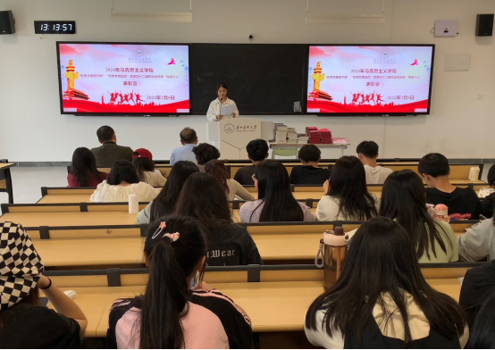 王万江作总结讲话,他首先对获奖同学表示热烈的祝贺,并对同学们提出了三点希望:一是要立足现实,确定目标。对自己的学习、工作等要有明确的规划,并脚踏实地完成。二是努力学习,锻造本领。要学真知、悟真理、增见识、长本领,知行合一、躬身实践。三是要满怀激情,勇挑重担。要无惧挑战、磨炼勇气。他希望受到表彰的同学珍惜荣誉、再接再厉,不负青春、不负韶华,保持昂扬斗志,做讲团结、讲奉献的马院人,为马院团学工作的高质量发展作出更大的贡献。