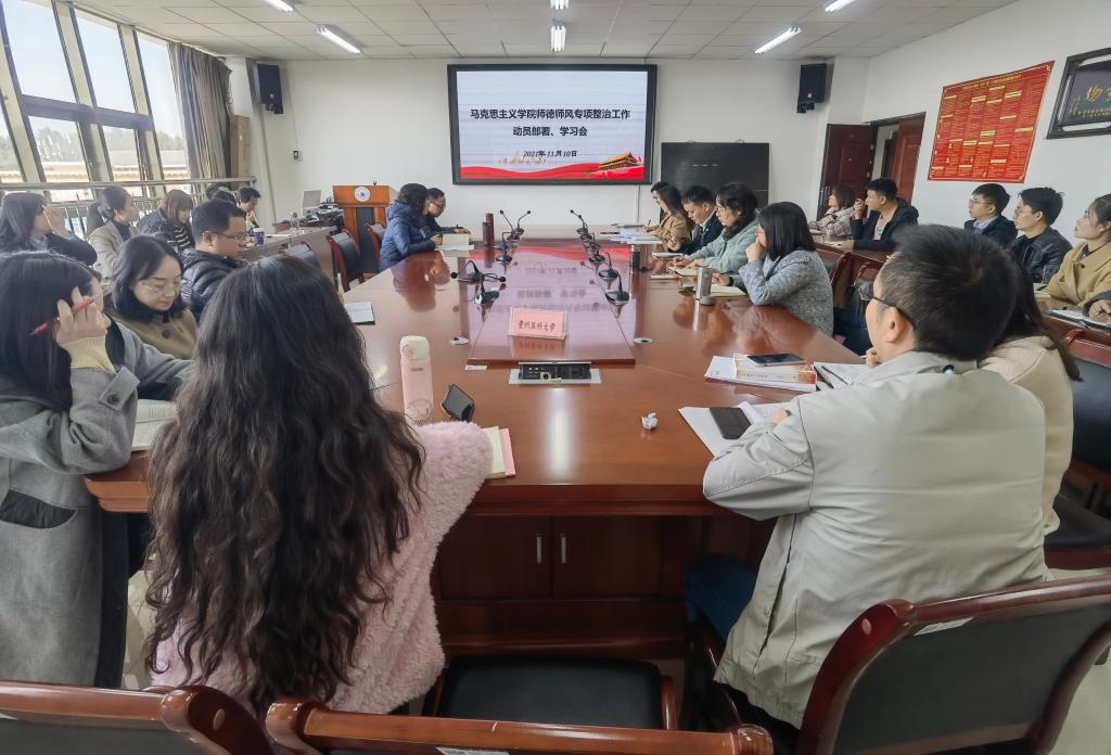为深入学习贯彻习近平总书记关于教育的重要论述和教师队伍建设的重要指示精神,贯彻落实加强教师队伍师德师风建设的系列文件精神和部署要求。11月10日下午,学院在会议室召开师德师风专项整治工作动员部署学习会,会议由杨成兰主持,无教学任务的教职工参加。