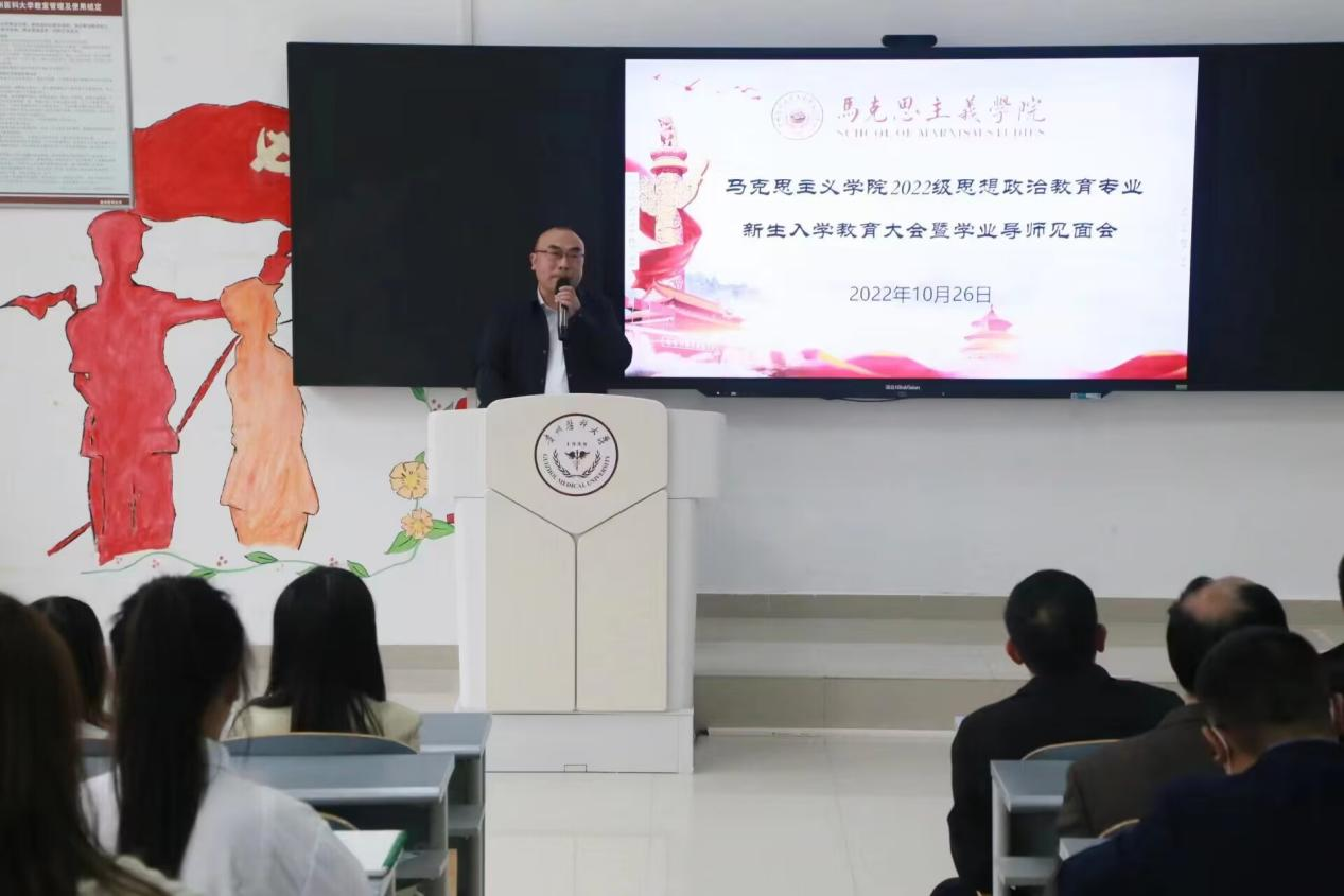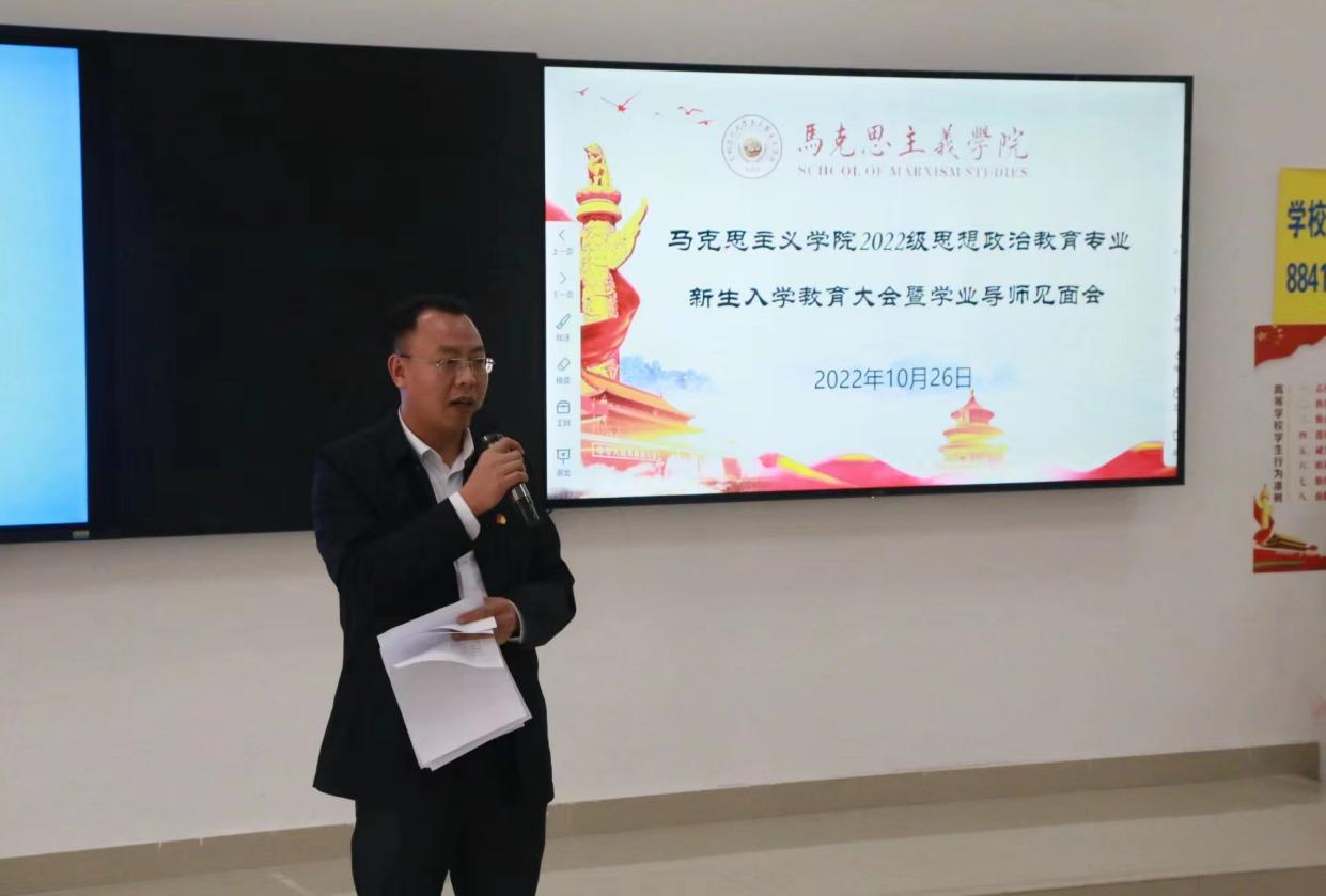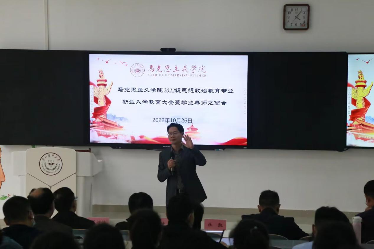 10月26日,公司在九思楼4202教室召开2022级思想政治教育专业新生入学教育大会暨学业导师见面会,公司党委全体成员、副科级以上干部(含教研室负责人)、辅导员、班主任、全体学业导师及2022级全体新生、2021级员工代表参加。会议由公司党委副书记王万江主持。