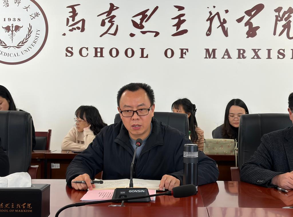 纪委书记冯斌聚焦监督执纪问责,就纪律约束与风险防控提出要求。他组织学习了上级关于网络安全、师德师风建设的文件精神。他强调,全体教职工需严格遵守政治纪律、工作纪律、廉洁纪律、生活纪律,重点规范课堂教学言行、师生交往界限、同事协作关系,杜绝各类违规违纪行为;要将师德师风建设纳入学院重点工作,强化日常监督检查与警示教育,对具有苗头性、倾向性的问题早提醒、早纠正,筑牢廉洁从教的思想防线。