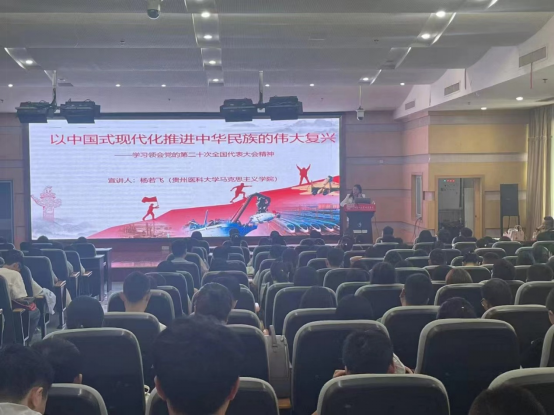 2023年8月1日,mksport体育附属医院开展了《以中国式现代化推进中华民族的伟大复兴——党的二十大精神宣讲》讲座,贵州省规培医师共250名学员参加学习。